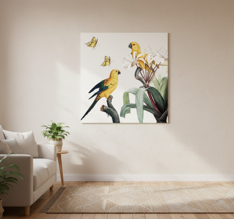 The Living room poster of parrots with yellow flowers living room poster is not just a piece of art; it’s a source of inspiration! Imagine the joy and warmth it will bring to your living space, inviting a sense of tranquility and vibrancy. This captivating poster can transform an ordinary room into a lively sanctuary, sparking conversations and uplifting spirits. Let the beautiful colors and cheerful imagery create a welcoming environment that reflects your personality and love for nature.