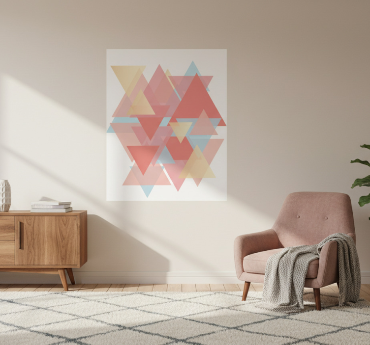 Reference: G874Introducing our stunning Living room poster pink and golden triangles, a masterpiece that combines elegance and modernity. This captivating design features pink and golden triangles, creating a visually appealing geometric pattern that brightens any space. With a 180g/m2 grammage, this poster is ideal for showcasing high-quality prints, boasting a semi-matt finish that eliminates reflections while enhancing color intensity.