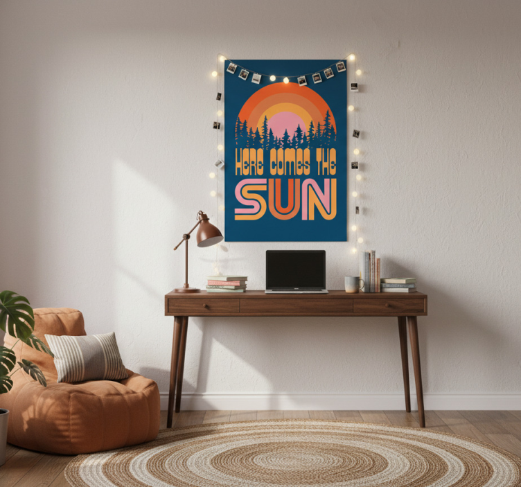 Reference: G767Introducing our Living room poster vintage sun art print, a stunning piece that brings warmth and nostalgia to your space. This beautiful design features a vibrant sun motif that radiates positivity, complemented by high colour intensity and a semi-matt finish that ensures no reflections disrupt its charm. With a grammage of 180g/m2, this poster is perfect for showcasing your style!