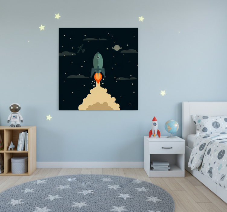 The Nursery poster cartoon rocket launching to space nursery poster is the perfect addition to any child's space-themed room. It inspires creativity and dream-filled nights, encouraging little ones to explore the vast universe of their imagination. Brighten up your nursery or playroom with this delightful design that captivates young minds and transforms the atmosphere into one of adventure and excitement!
