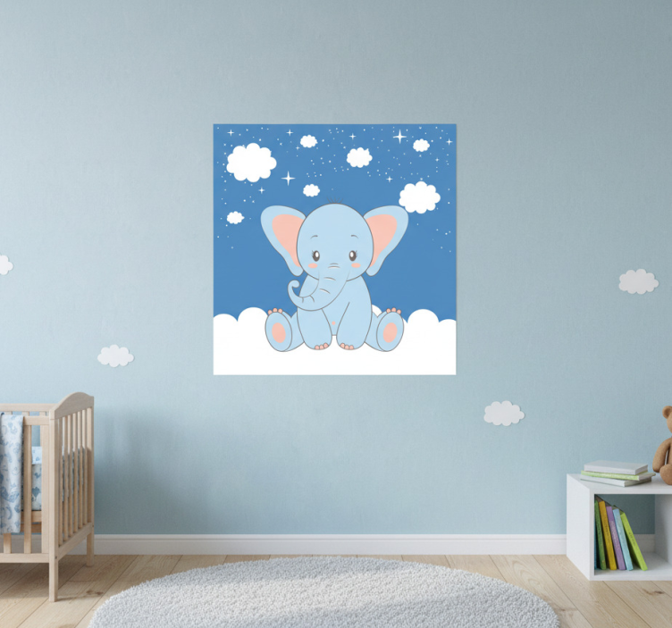 Reference: G904Introducing our delightful Nursery poster cute baby cartoon elephant blue, designed to bring joy and charm to any child's room! This enchanting poster features a playful baby elephant in soft blue hues, surrounded by whimsical clouds and stars. The 180g/m2 grammage ensures durability and a beautiful semi-matt finish means no reflections, allowing the vibrant colors to shine through beautifully, making it a perfect addition to your nursery decor!