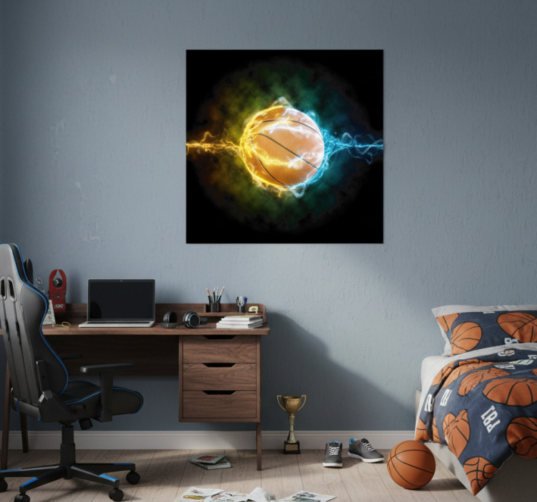Reference: G727Introducing the Poster for teenager water and fire basketball, a stunning visual masterpiece that captures the essence of dynamic sportsmanship! This poster features vibrant imagery, showcasing the fierce clash of water and fire elements intertwined with the spirit of basketball, all printed on a high-quality 180g/m2 material. With its semi-matt finish, it ensures no reflections disrupt the captivating colors, making it perfect for any young athlete's room!