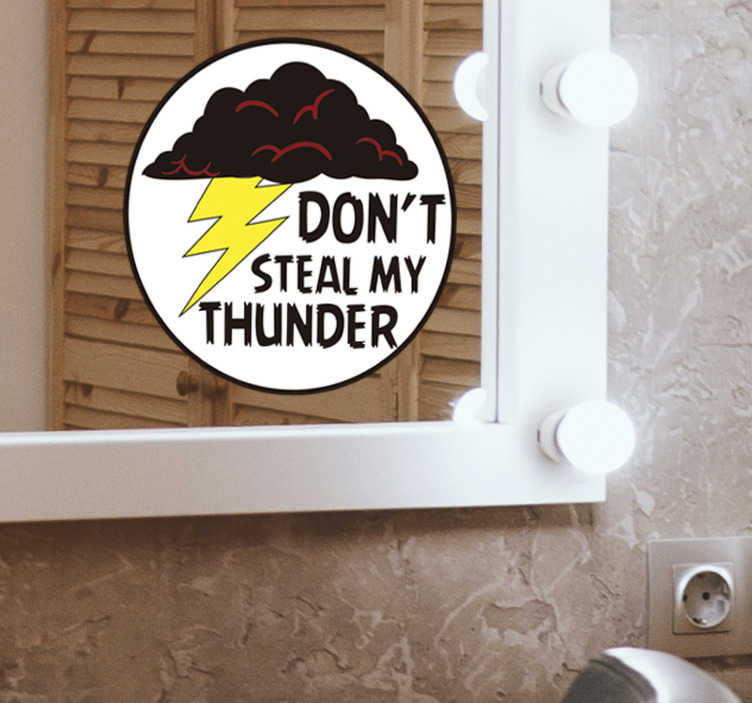 ''Don't steal my thunder'' bathroom sticker that can be applied on the mirror or door. This design is easy to apply and it is of high quality.