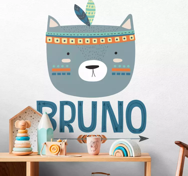 Introducing our Adorable creature visage wall sticker for kids, a delightful blend of whimsical and playful design elements that will brighten any child's room! Featuring a colorful and friendly Nordic cat adorned with feathers, this customisable wall sticker allows you to add your child's name for a unique touch. The charming animal design is perfect for creating a cozy and inviting atmosphere that sparks imagination and joy!