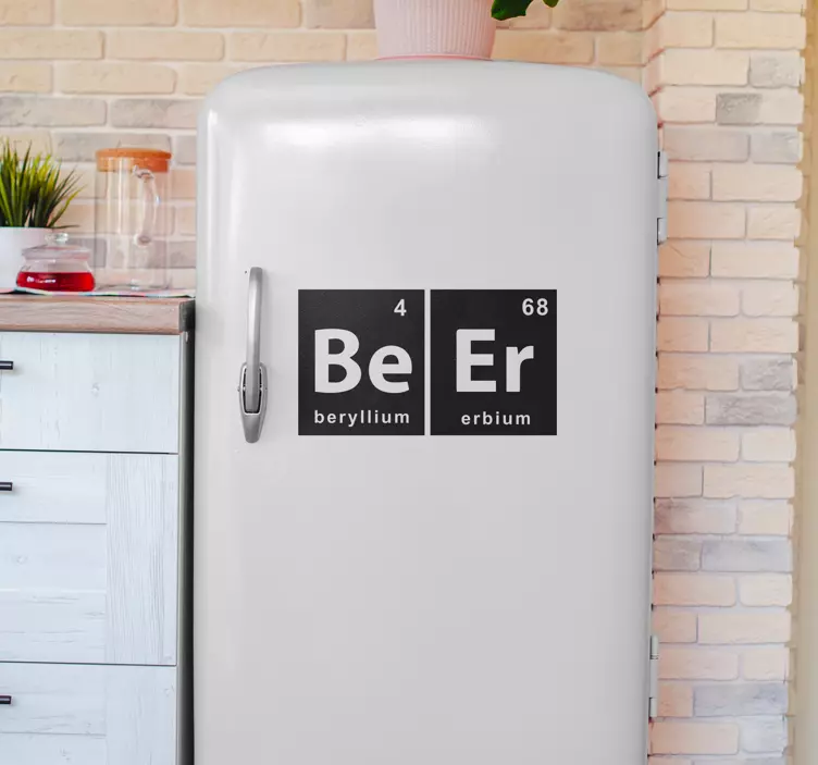 Enhance your fridge's appeal with this amusing Beer Chemistry Drink Wall Sticker. The design cleverly combines two elements to spell out 'BEER,' making it a perfect choice for beer enthusiasts. With a touch of humor and cheerfulness, this sticker adds a unique element to your fridge space, akin to the periodic table's chemical elements.