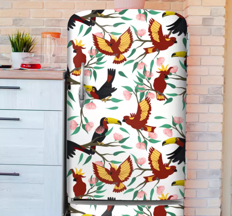 Transform your space with our Bird wall sticker tropical bird designs, featuring an enchanting array of fridge-friendly parrots and toucans. This vibrant design brings the essence of nature into your home, showcasing a playful pattern filled with colorful, whimsical birds and floral accents. The tropical theme radiates positivity and joy, making it a perfect addition to any room!