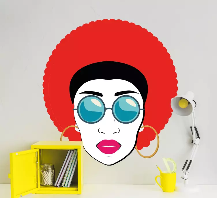 Transform your space with our stunning Bold afro portrait wall sticker, a vibrant illustration that celebrates femininity and style! Featuring a beautiful woman adorned with sunglasses and colorful accessories, this eye-catching portrait adds a unique touch to any room. The lively colors and artistic design make it a perfect focal point, bringing energy and personality to your walls.