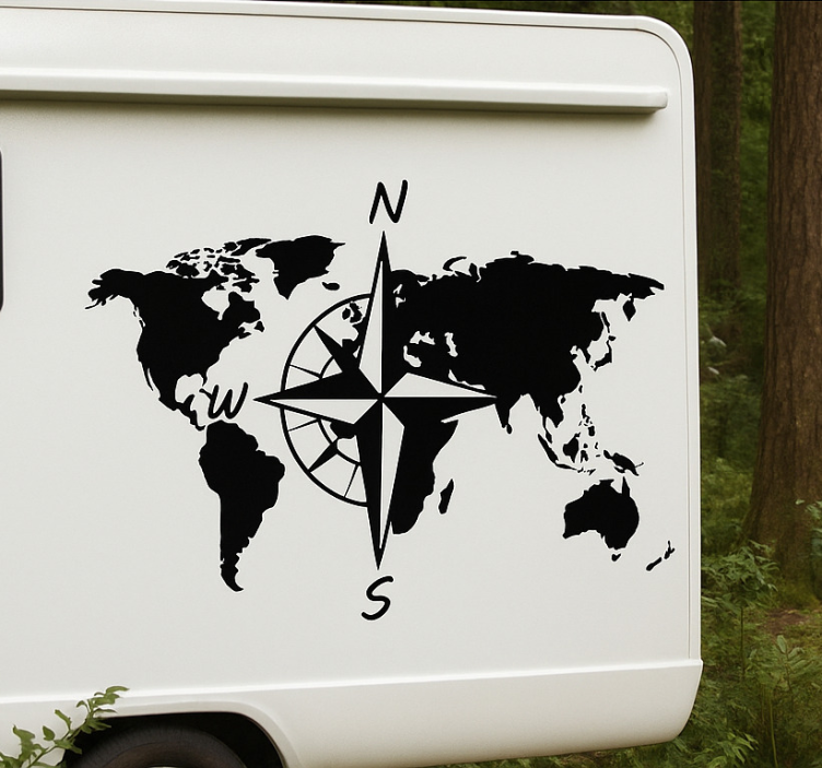 Reference: A53896Transform your campervan into a stunning masterpiece with our Campervan decal world map with compass. This captivating design features a beautifully illustrated world map adorned with a compass, allowing you to express your wanderlust and adventurous spirit. The intricate details and vibrant colors make it an eye-catching addition to your vehicle, inspiring you to explore new destinations.