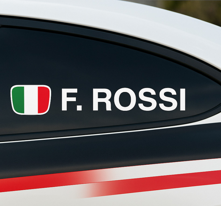 Reference: A54619Introducing our Car sticker personalized name design with italian flag, a vibrant and stylish way to express your personality! This eye-catching design features the iconic Italian flag, seamlessly integrated with your personalized name, creating a unique statement piece for your vehicle. The high-quality vinyl is made with a satin finish that not only enhances color intensity but also prevents glare, ensuring a visually appealing look from every angle. With a durability of about 8-10 years, this product is resistant, washable, and perfect for any flat surface!