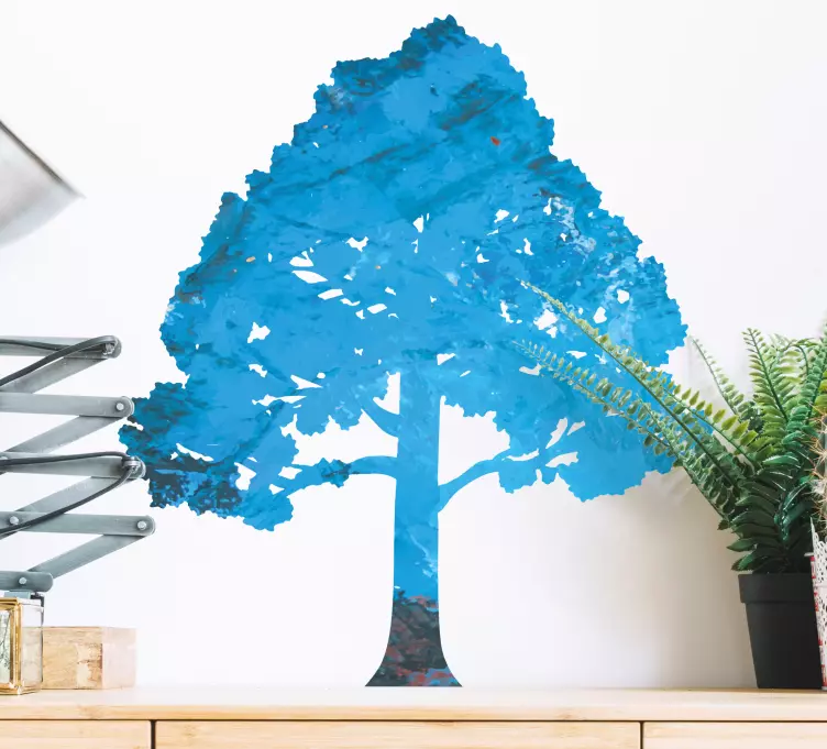 Transform your space with the stunning Cityscape wall sticker blue leafy tree. This exquisite design features a vibrant blue silhouette of a tree adorned with colorful leaves, creating a beautiful texture that brings the essence of nature into your home. The harmonious blend of colors and the detailed depiction of the tree make this wall sticker a striking focal point for any room!