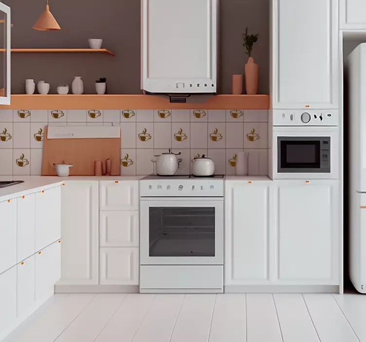 Reference: A38704The Coffee cups backsplash sticker is a beautifully designed wall sticker that features a coffee cup icon. The design is simple yet elegant, making it perfect for any room in your home. The sticker is produced in matt colours, which gives it a modern and stylish look. It can be cleaned easily with a damp cloth and a little neutral soap without damaging the quality. The product has a grammage of 80 microns, has a built-in adhesive and has a durability of about 8-10 years.