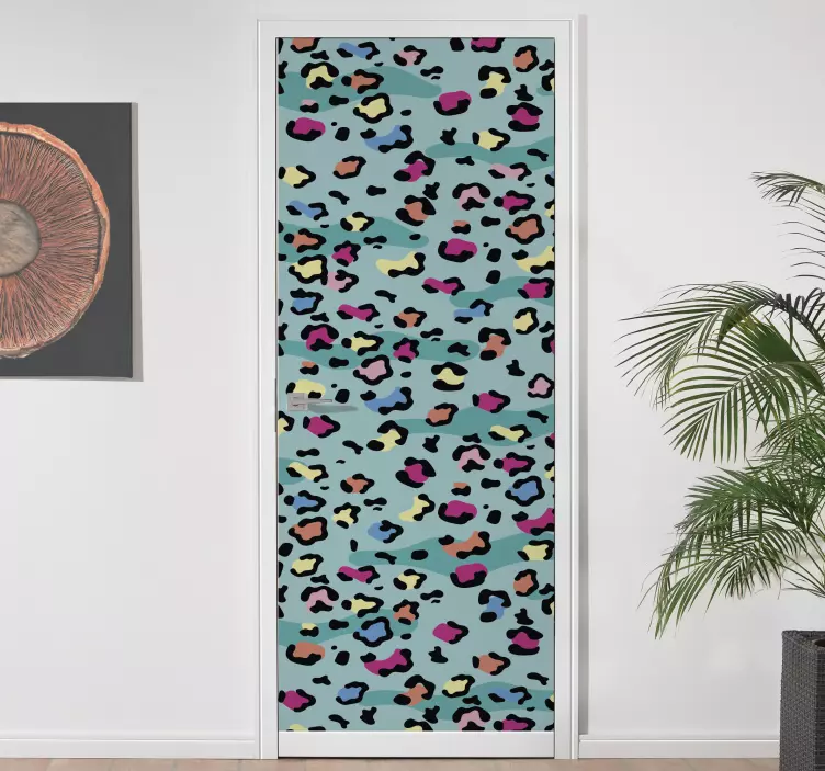 Colorful leopard print door sticker