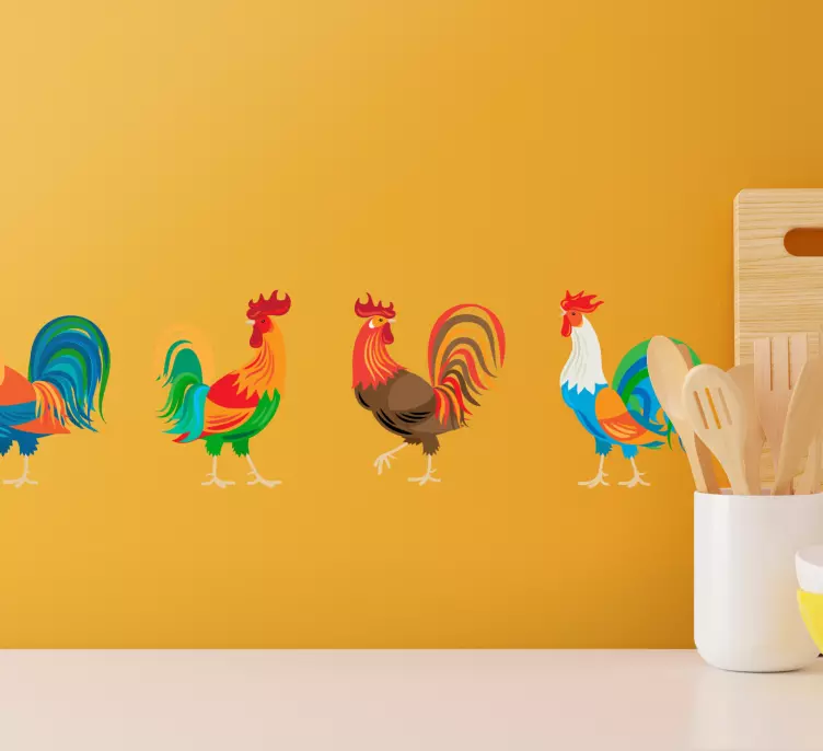 Transform your space with our Colorful rooster display wall border sticker, a delightful design that features charming roosters amidst vibrant colors, perfect for adding a touch of farm-inspired cheer to your kitchen or any room. This captivating wall border sticker brings the essence of rustic charm right into your home, making it an ideal choice for animal lovers and those who appreciate a lively decor.