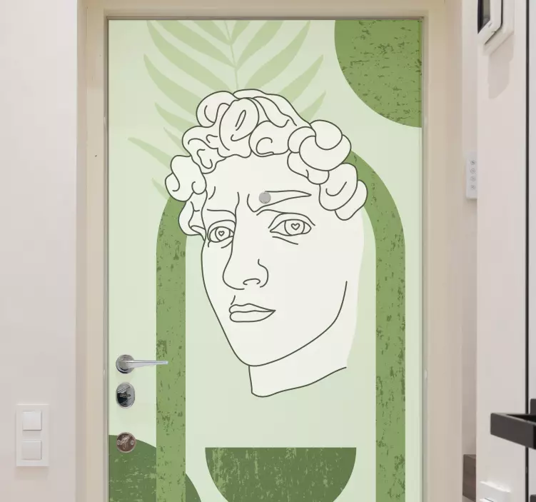 Transform your space with our Contemporary face artwork door sticker, featuring an exquisite graphic design that beautifully blends the iconic David statue with minimalist line art. This modern design showcases green tones and abstract shapes, creating an eye-catching focal point for any door. Elevate your decor with this stunning adhesive that speaks to contemporary aesthetics!