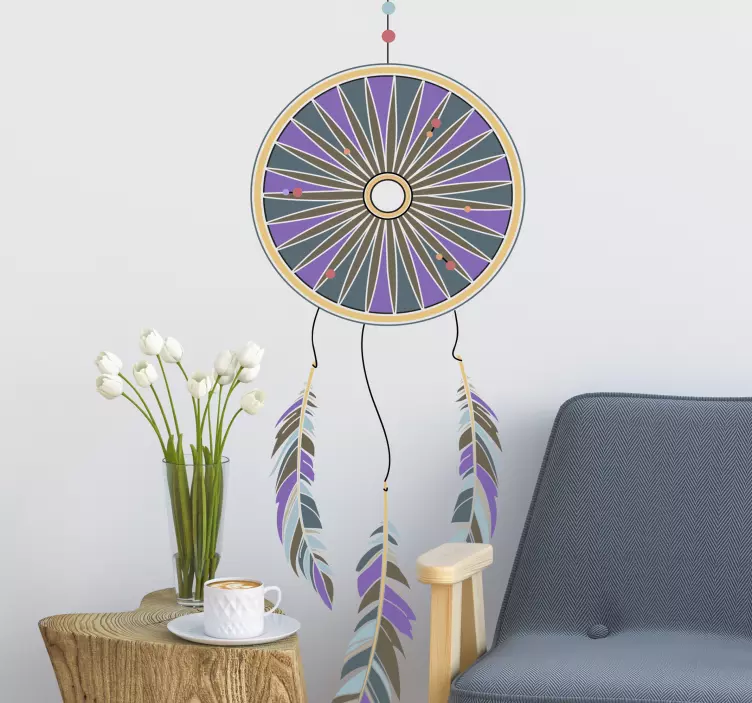 Transform your space with our stunning Dream catcher concept decoration wall sticker. This captivating design features a beautifully illustrated dreamcatcher adorned with colorful feathers and geometric patterns in vibrant purple hues, creating a bohemian vibe that is both enchanting and visually appealing. Perfect for those who love unique decor, it will instantly elevate the ambiance of any room!