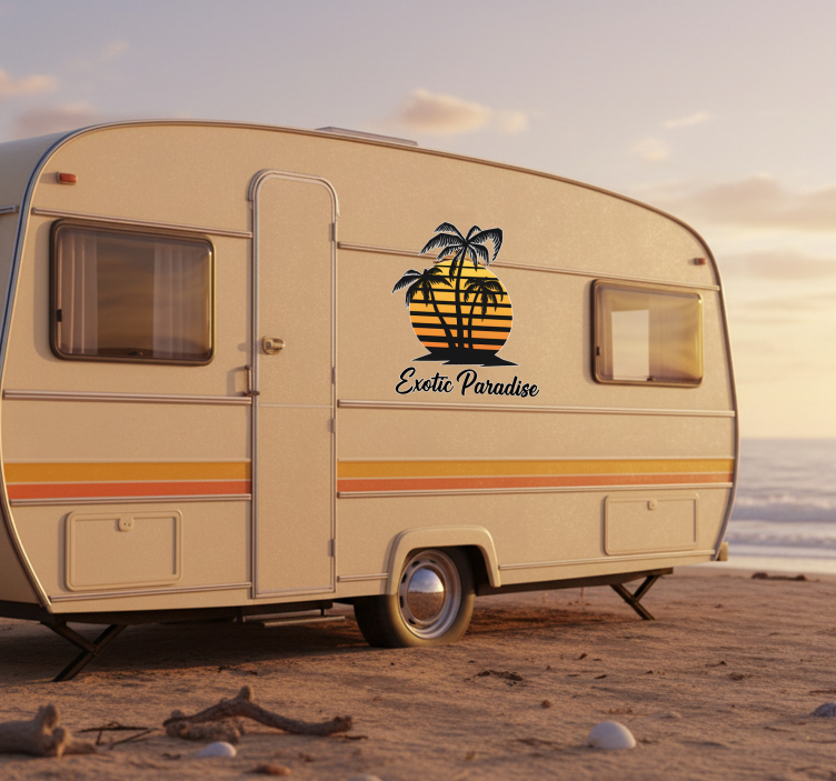 Exotic paradise sunset campervan decal