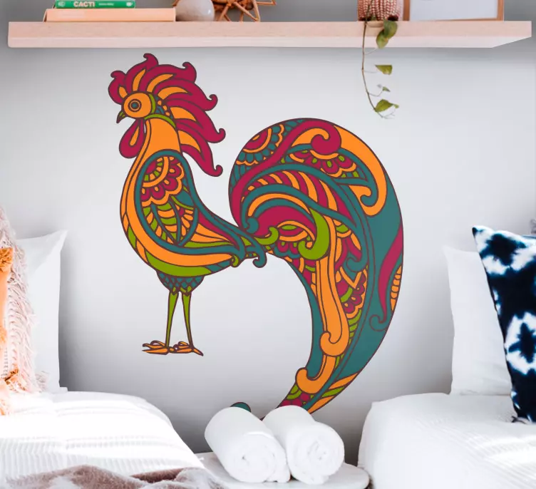 Introducing our stunning Farm animal wall sticker colorful rooster design, featuring an intricately crafted rooster silhouette that embodies a vibrant and ornate aesthetic. This decorative piece draws inspiration from ethnical designs, making it a captivating addition to any farm-themed decor. The combination of colors and intricate patterns brings life to your space, creating a warm and inviting atmosphere!