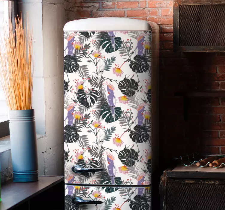 Transform your space with our stunning Farm animal wall sticker tropical floral design. This vibrant design features an enchanting mix of colorful birds and parrots nestled among lush greenery, intertwined with beautiful leaves and tropical floral elements. The delightful combination of cockatoos and lively patterns brings a touch of nature indoors, making it a perfect decor choice for any room!