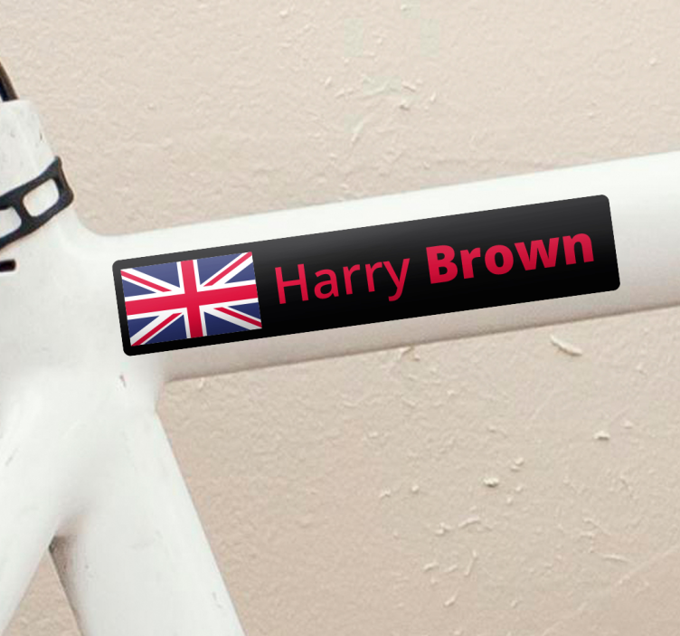 UK flag with bold last name bike sticker
