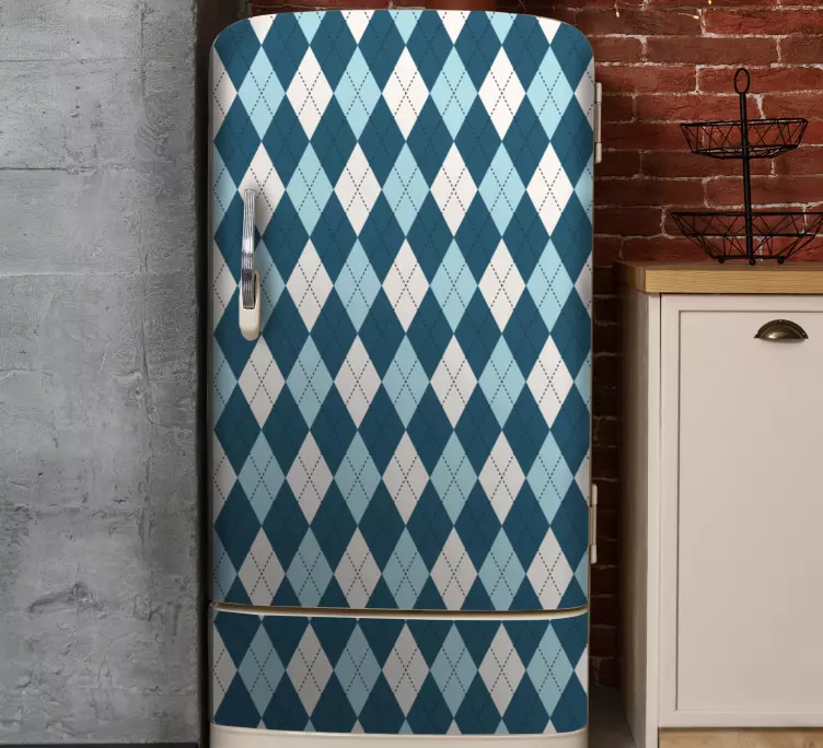 Transform your kitchen with our stunning Fridge sticker diamond pattern wrap, featuring an elegant design of beautiful rhombuses and diamonds in a captivating blue geometric pattern. This modern design effortlessly enhances your fridge, adding a touch of sophistication to your culinary space!