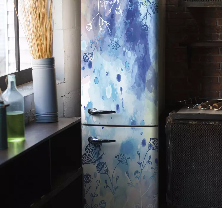 Introducing our Fridge sticker floral butterfly design, a stunning piece of art that captures the essence of nature with a delightful blue watercolor splash. This vibrant design features intricately drawn floral elements and colorful butterflies, creating a refreshing ambiance for your fridge or refrigerator. Transform your kitchen space into a lively oasis with this beautiful representation of nature!