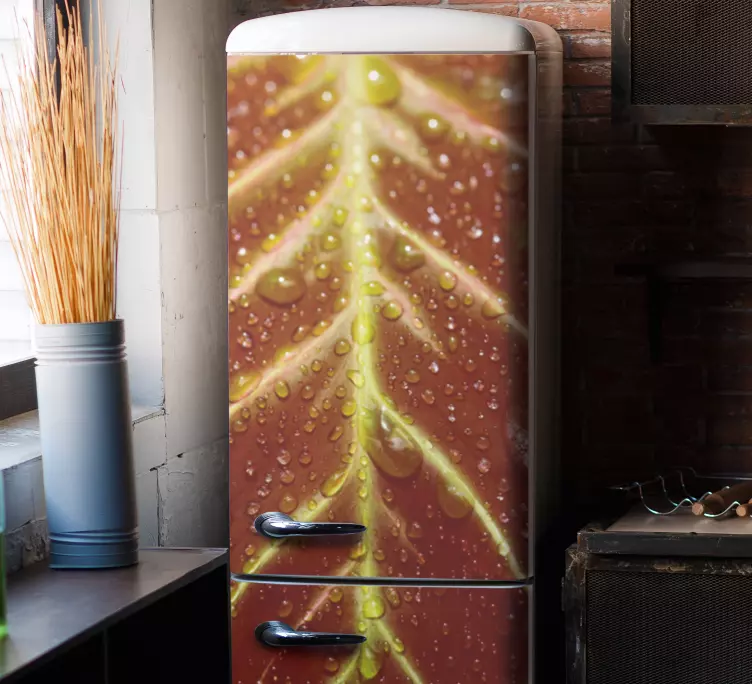 Transform your kitchen with our stunning Fridge sticker leaf water droplets design, featuring a beautiful maranta leaf pattern that captures the essence of nature. This floral design showcases vibrant green leaves adorned with delicate water drops, creating a refreshing texture that breathes life into your space. Perfect for nature lovers, this fridge sticker elevates your home decor with its eye-catching graphics!
