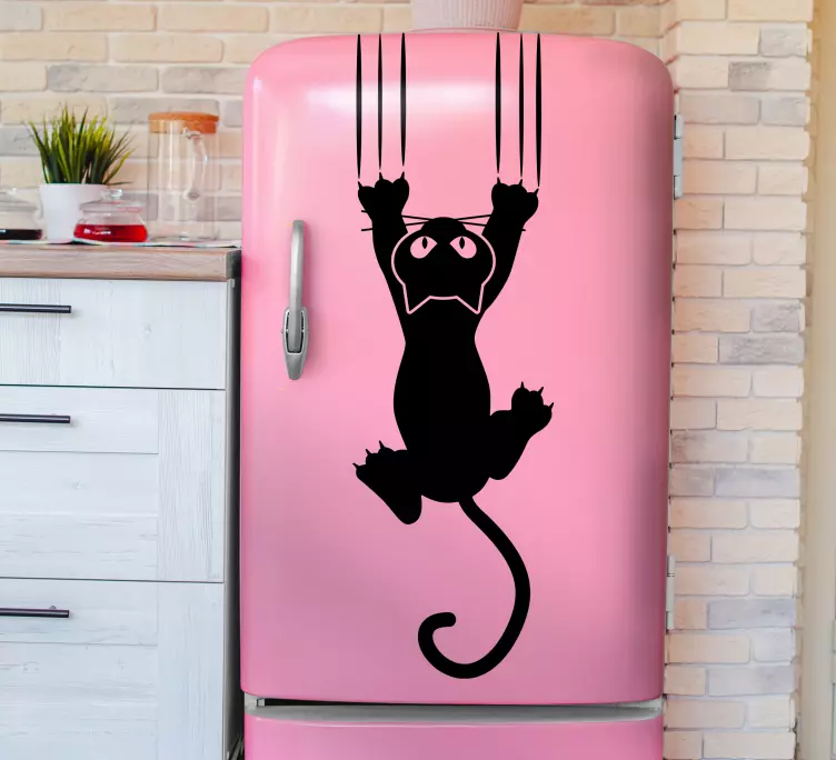 Enhance your home decor with this Fridge sticker playful cat climbing fridge sticker! This unique decoration not only brightens up your kitchen but also expresses your love for playful designs. Imagine a lively cat scaling your fridge, creating an atmosphere of joy and whimsy. It's the perfect way to showcase your personality and make your kitchen feel more inviting!