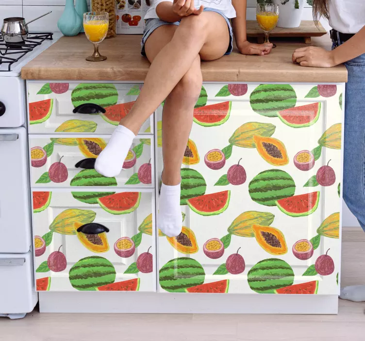 Introducing our vibrant Fruit sticker fruit design creation, a stunning graphical representation that brings the essence of tropical fruits right into your home! Featuring delightful watermelons, papaya, and lemon patterns, this design is colorful and perfect for enhancing your furniture. Immerse yourself in a lively atmosphere with a design that captures the joy of summer and freshness!
