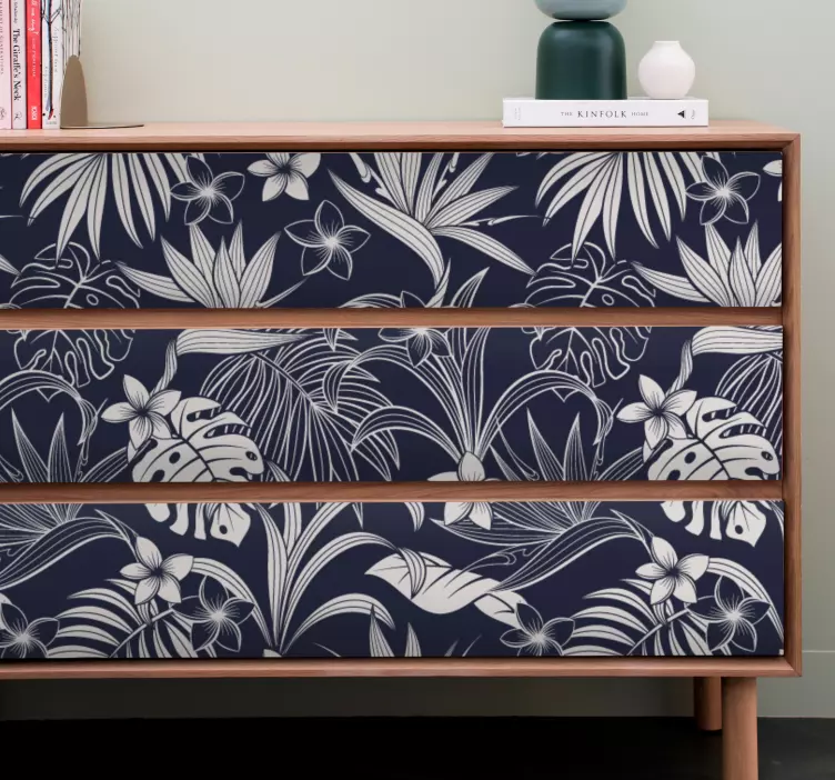 Transform your space with our Furniture sticker botanical pattern design, which beautifully captures the essence of nature. This stunning design features an array of vibrant leaves and floral patterns, infusing modern interiors with a tropical vibe that brings the outdoors in. Perfect for adding a touch of botanical elegance to any piece of furniture, this sticker is a true celebration of nature.