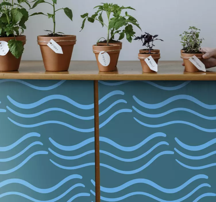 Transform your space with our Furniture sticker flowing aqua patterns. This stunning design features graceful waves and flowing lines in soothing shades of blue, creating an inviting atmosphere that complements your furniture. Perfectly suited for any home, this pattern harmonizes beautifully with plants and pots, bringing a touch of nature indoors!