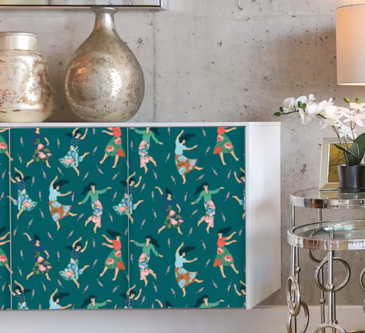 The Furniture sticker joyful movement design features a vibrant and lively graphic that captures the essence of women dancing in a celebratory pattern. This dynamic design showcases abstract figures in a colorful dance, making it a perfect addition to any furniture piece, breathing life and joy into your living space!