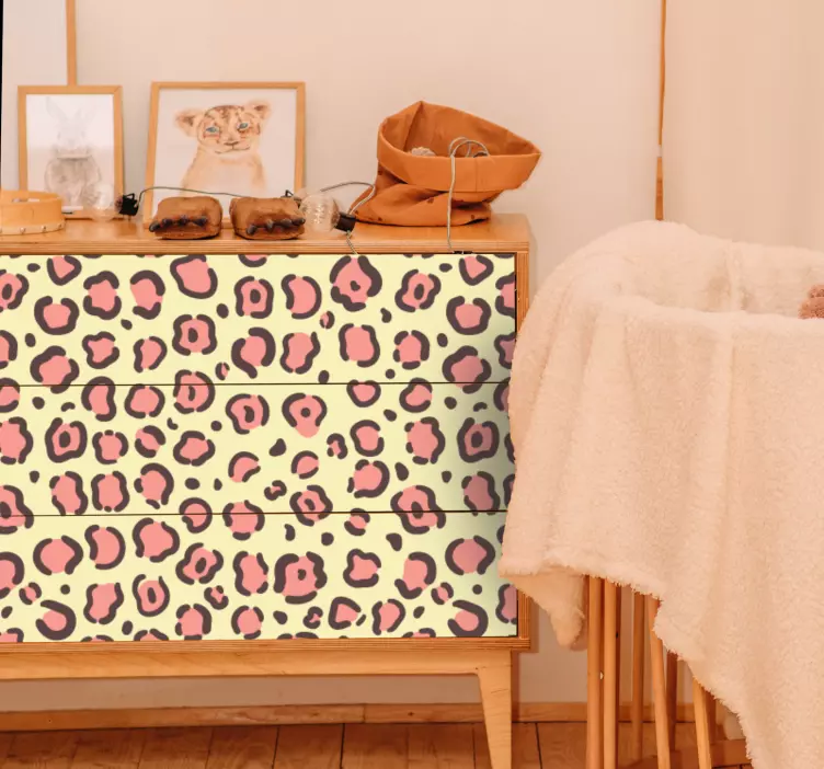 Transform your space with our stunning Furniture sticker leopard fur texture. This design showcases a vibrant animal print that features bold leopard spots against a playful pink backdrop. The unique patterns breathe life into your furniture, adding a touch of wild elegance that is both eye-catching and stylish!