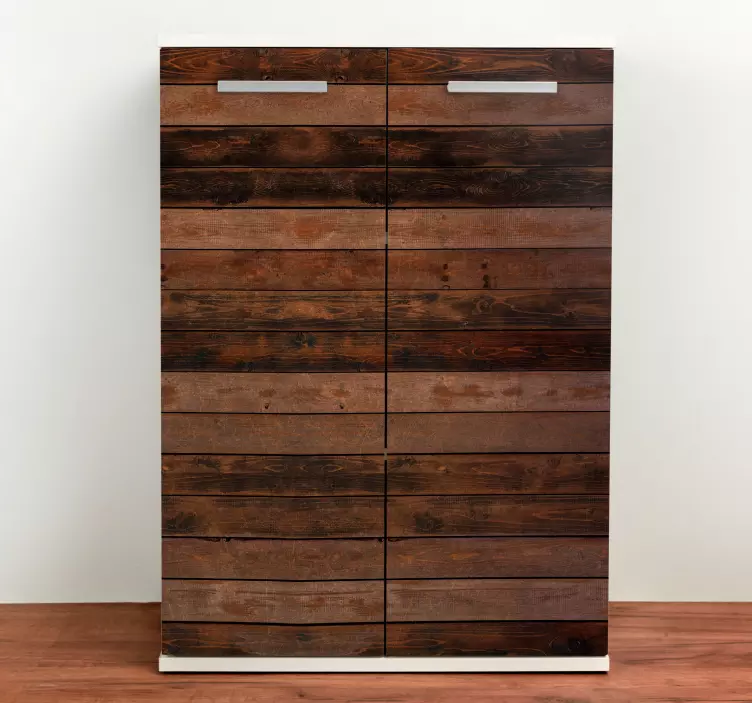 Transform your space with our Furniture sticker rustic wooden cabinet design, which beautifully mimics the appearance of brown horizontal planks with an inviting texture that evokes a natural, rustic charm. This stunning furniture accent will enhance your home, adding warmth and character to any room.