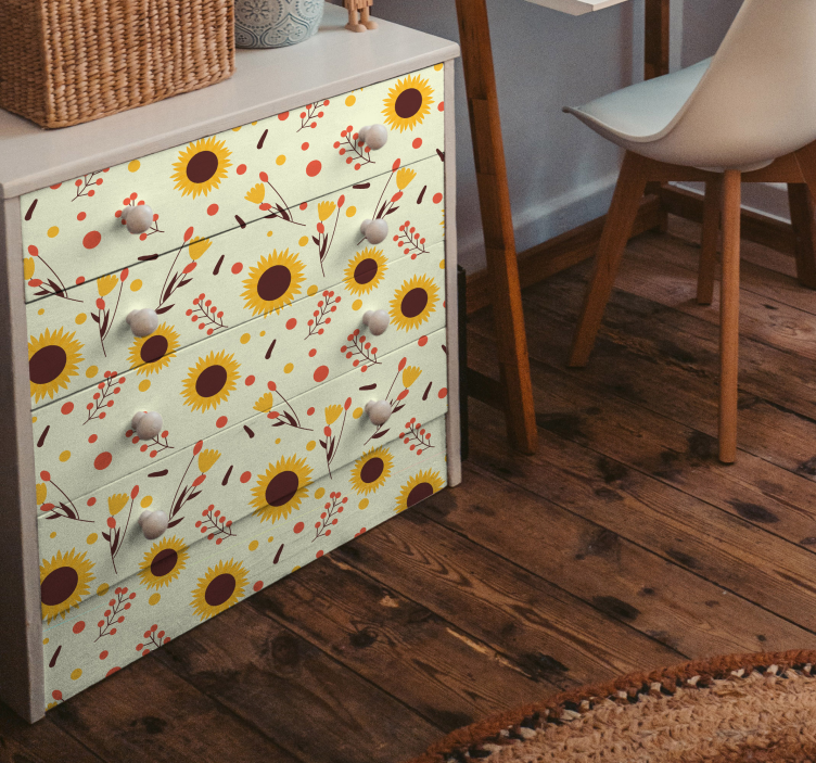 Transform your living space with our Furniture sticker sunflower pattern design, featuring a vibrant array of sunflowers that beautifully capture the essence of nature. This colorful floral pattern brings life and warmth to any piece of furniture, making it a stunning focal point in your home decor.