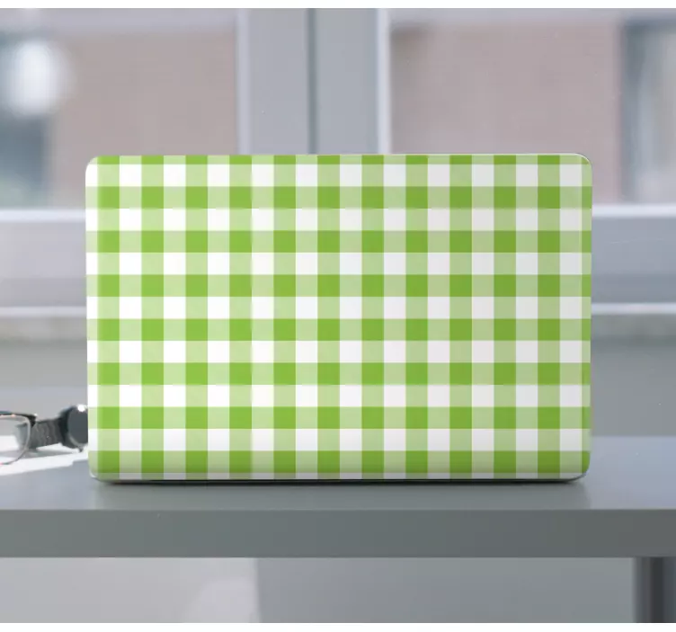 Introducing our stunning Green gingham motif laptop skin, designed to bring a touch of charm to your device! This delightful design features a classic plaid pattern in vibrant green, reminiscent of a cozy tablecloth. The checkered style adds a refreshing twist, making it a perfect accessory for any laptop. Transform your workspace with this eye-catching laptop skin that combines style and functionality.