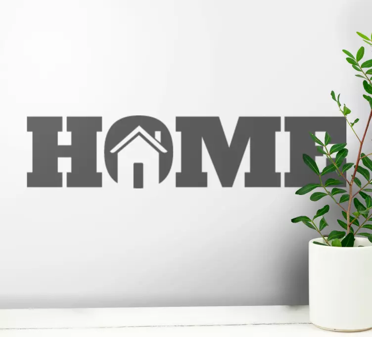 Reference: A49083This design features the word 'home' with an integrated roof symbol, emphasizing comfort and a sense of belonging. Its monochromatic style offers flexibility in color selection, making it suitable for various home interiors.