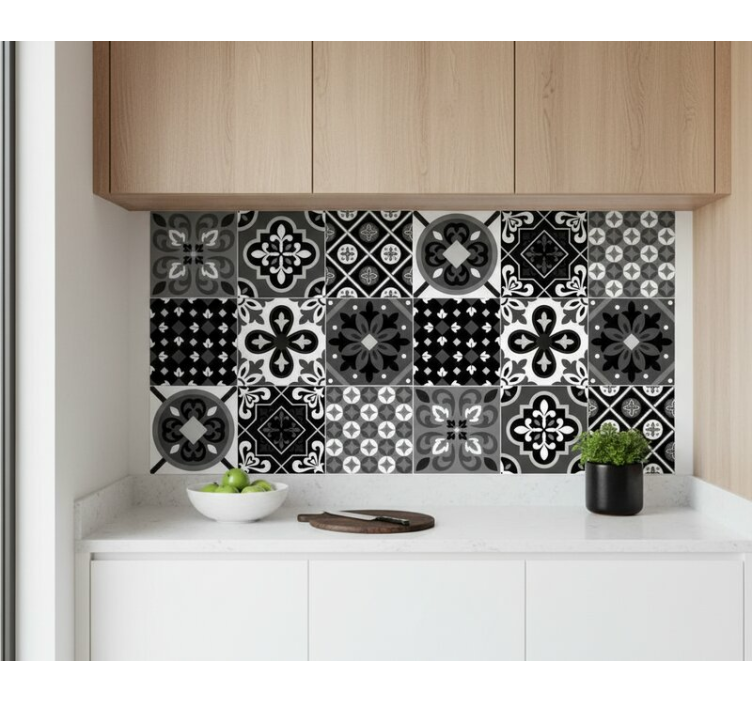 Reference: A54009Transform your kitchen with our Kitchen tile sticker stark black geometric contrast. This stunning design features bold black geometric patterns that create a striking visual contrast, perfect for modern aesthetics. The sticker blends style and functionality, showcasing a seamless look that elevates any space while being easy to maintain.