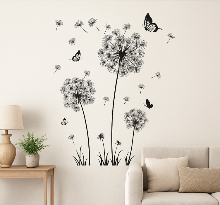 Reference: A54035Transform your space with our stunning Living room wall sticker dandelion butterfly, a captivating design that beautifully combines fluttering butterflies with delicate dandelions. This enchanting artwork adds a touch of nature to your home, creating a serene atmosphere where every glance inspires joy. The intricate details and vibrant colors make it a perfect focal point, inviting tranquility and elegance into your living room.