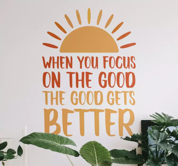 Reference: A48444A cheerful quote emphasizes the importance of positivity. Featuring sun motifs, it encourages focusing on the good in life for better outcomes. The warm colors radiate optimism, making it a perfect addition to uplifting spaces.