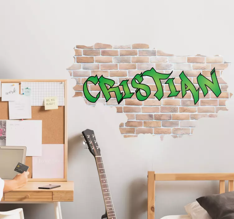 Reference: A49602A vibrant urban-themed element featuring a custom name in a graffiti style, set against a brick wall background. This product brings an edgy flair to any space, allowing for personal customization to create a unique statement.