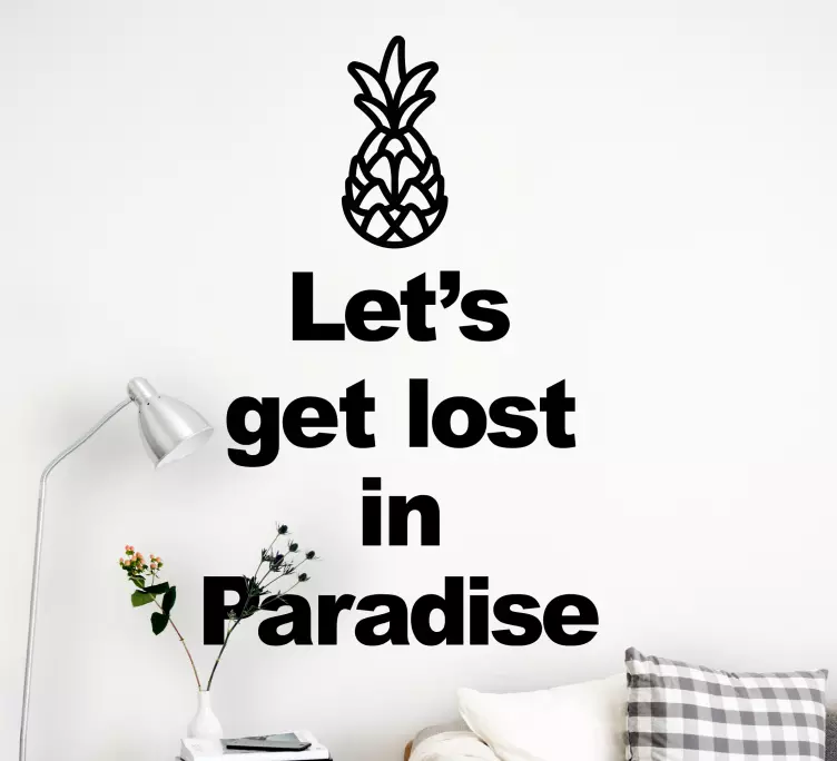 Bring a splash of tropical vibes into your space with our Location sticker pineapple quote art. This stunning design features a vibrant pineapple alongside an inspirational quote that encourages you to get lost in paradise and find a sense of home in decor. Perfect for anyone looking to add a touch of fruit-inspired charm and motivation to their surroundings!
