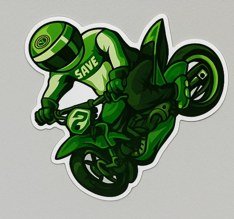 Reference: A54116Introducing our striking Motorbike sticker green rider spray, designed to elevate your ride with its vibrant green hues and dynamic rider imagery! This stunning graphic showcases a fearless rider in action, perfectly capturing the thrill and freedom of the open road. The sticker’s high-quality vinyl ensures durability and vivid colors, making it perfect for both seasoned bikers and casual riders alike.