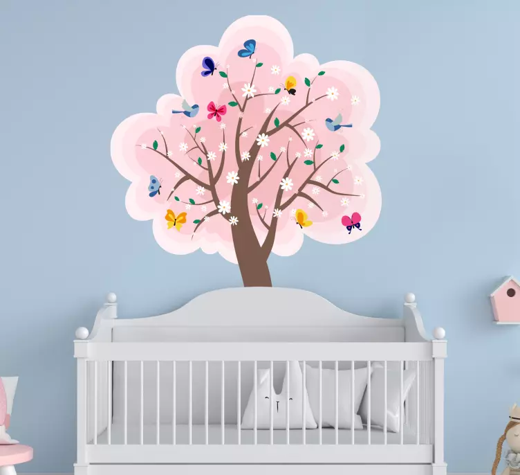 Transform your living space with our Nature wall sticker blooming tree scene, a stunning illustration that brings the beauty of spring indoors. This design features a vibrant tree adorned with delicate flowers and fluttering butterflies, all rendered in a palette of captivating colors including soft pinks that evoke the essence of nature. It's perfect for anyone looking to add a touch of cheerfulness and elegance to their home decor!
