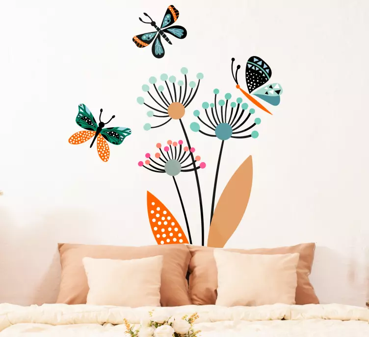 Transform your space with our Nature wall sticker colorful floral butterflies. This enchanting design features vibrant butterflies fluttering among a stunning array of flowers and leaves, creating a whimsical atmosphere that brings nature indoors. The lively colors and intricate details make it a decorative masterpiece, perfect for any room!