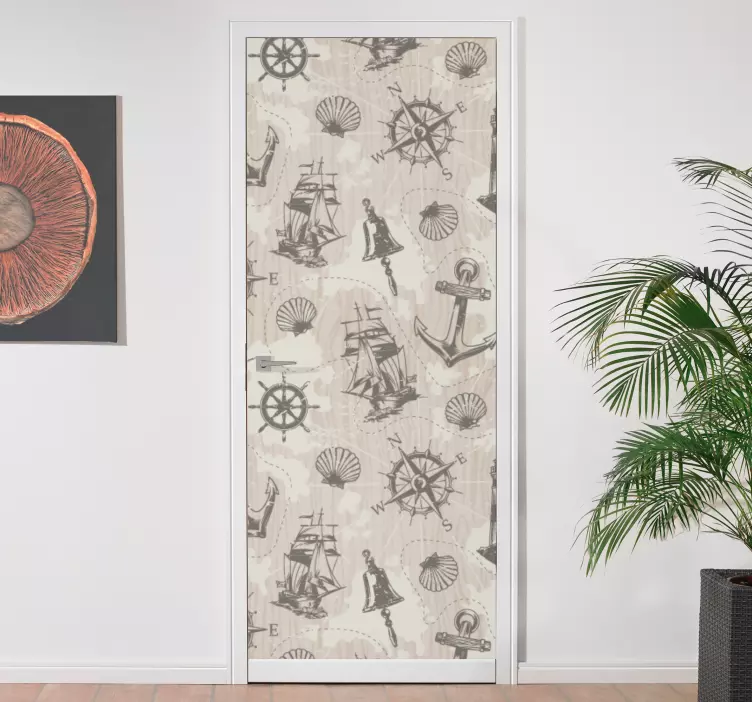 Transform your space with our Nautical adventure theme door sticker, featuring a captivating design of anchors, wood planks, and vibrant illustrations that evoke the spirit of the sea. This delightful sticker showcases a beautiful pattern of lighthouses, ships, seashells, and compasses, perfect for adding a touch of marine charm to any door. Ideal for beach lovers and sailing enthusiasts, this door sticker brings the ocean's allure right into your home!