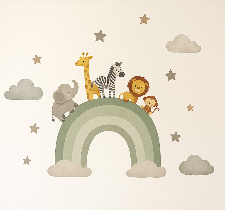 The Nursery room wall decal animal cool rainbow journeys Nursery room wall decal is an ideal choice for decoration because it inspires a sense of wonder and adventure in your little one's room. Imagine their delight as they gaze upon friendly animals exploring colorful landscapes! This enchanting wall decal serves as a focal point, sparking imagination and enhancing the overall decor with its joyful aesthetic.