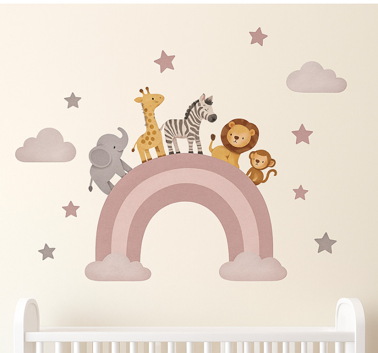 The Nursery room wall decal animal pastel rainbow journey Nursery room wall decal is an ideal choice for adding charm and personality to your child's room! Its captivating design not only enhances the aesthetic appeal but also sparks creativity and wonder in young minds. Imagine your little one being surrounded by cheerful animals on their colorful journey, encouraging them to dream and explore their imagination every day.