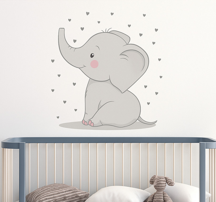 Reference: A54162Transform your nursery with our beautifully designed Nursery room wall decal happy grey hearts elephant. This delightful wall decal features an adorable elephant surrounded by charming grey hearts, creating a warm and inviting atmosphere perfect for your little one’s space. The elegant design not only adds a touch of whimsy but also complements any nursery decor, making it an ideal choice for parents who want to create a joyful environment for their children.