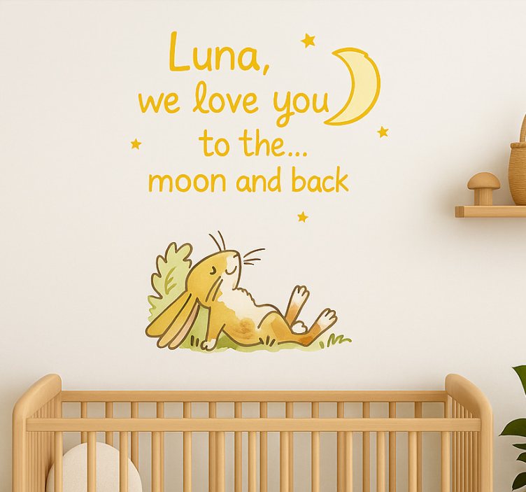 Installing the Nursery room wall decal yellow name moon & back Nursery room wall decal is simple and straightforward! You can easily apply it to any flat surface. For best results, ensure the surface is clean and dry before application. This versatile decal can be removed and repositioned without damage, allowing for adjustments as your child's needs change.