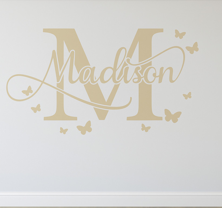 Nursery wall art sticker cursive custom name beige